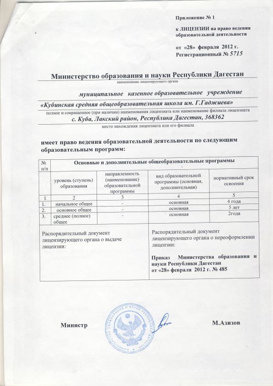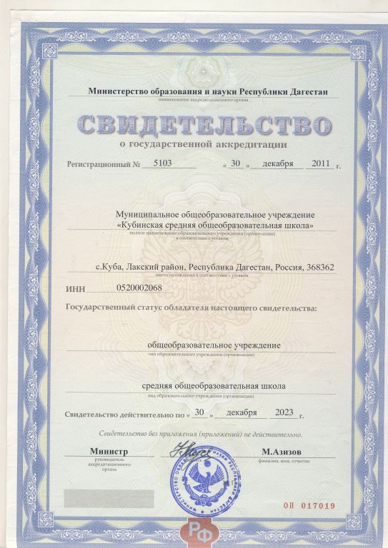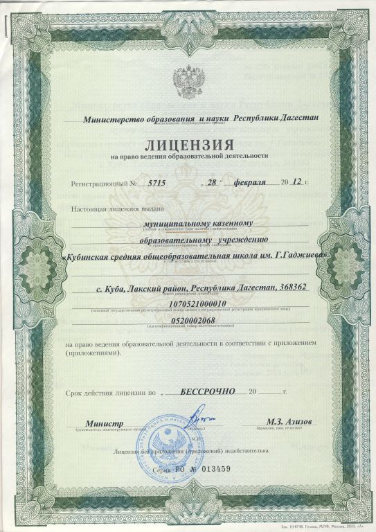 368362 Республика Дагестан Лакский район с.Куба, ул. Школьная 2